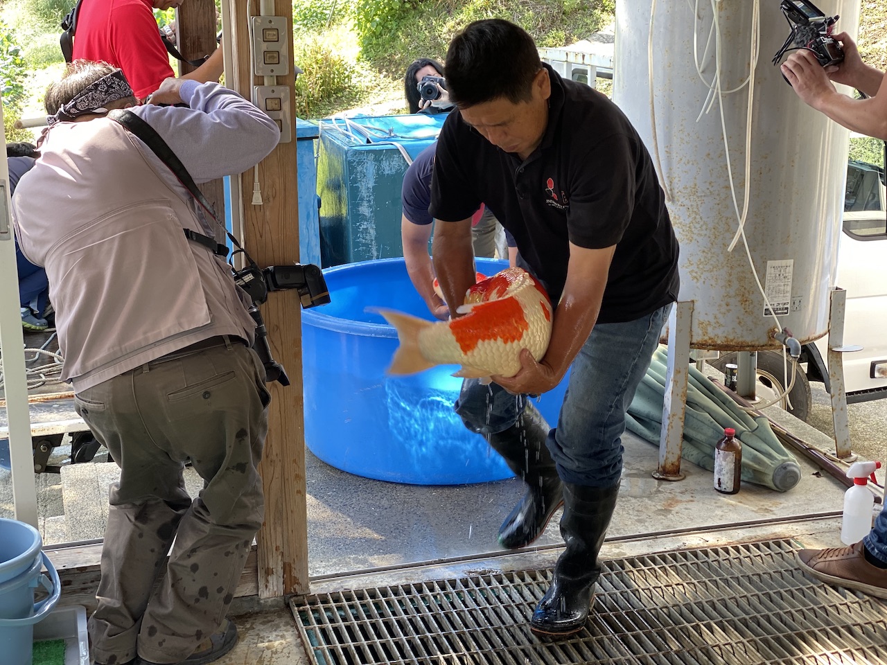 Today was a great day, one of our clients from Miami did his very first Harvest in Japan. He has handled Koi before
