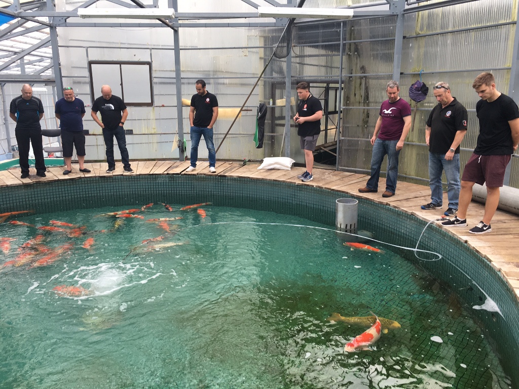 We also have Koi belonging to clients in this pond, clients who are now with us. We would never usually do a party of guests as big as this one but because they all wanted to see their Koi harvested, it was the only choice! Its a good job they all know each other.
